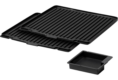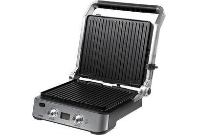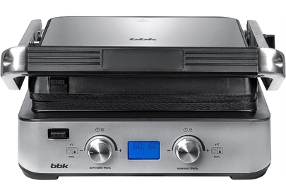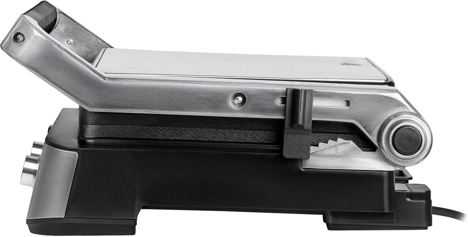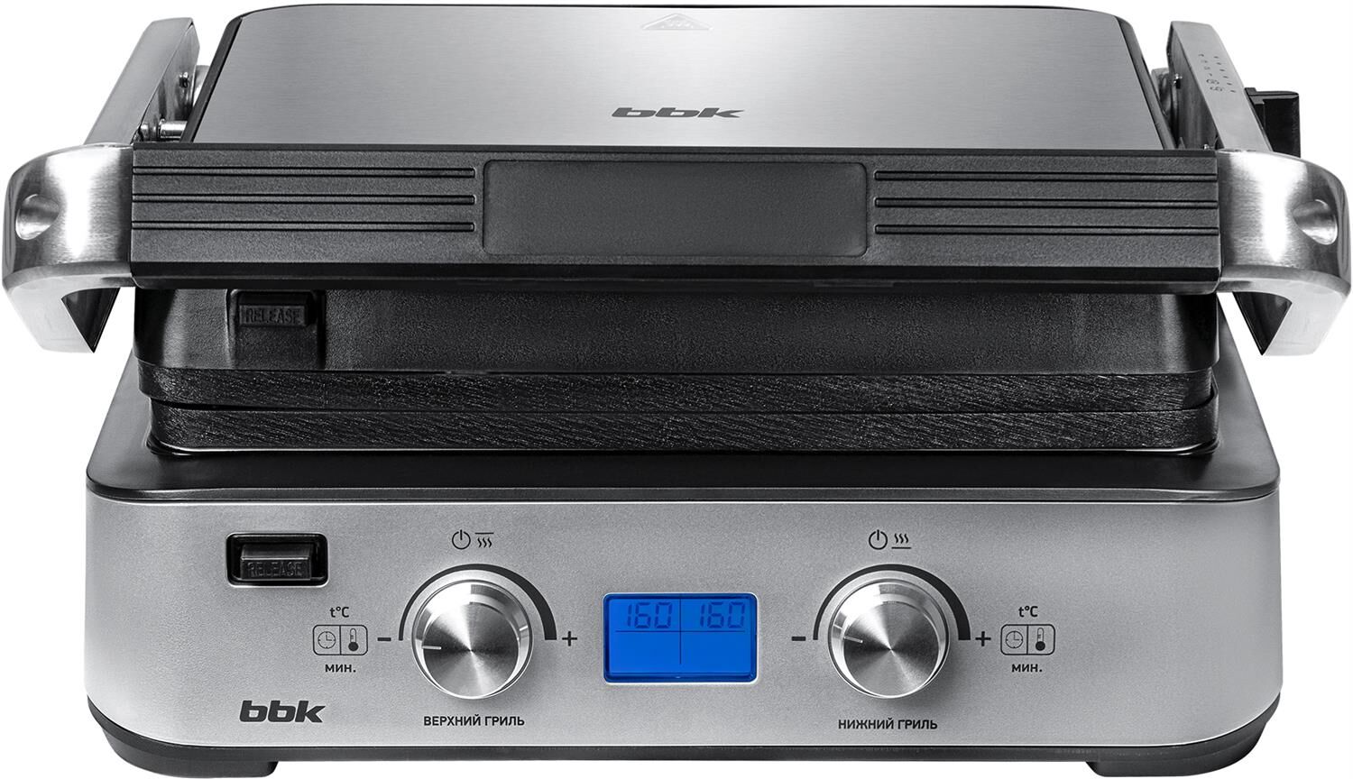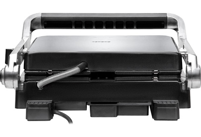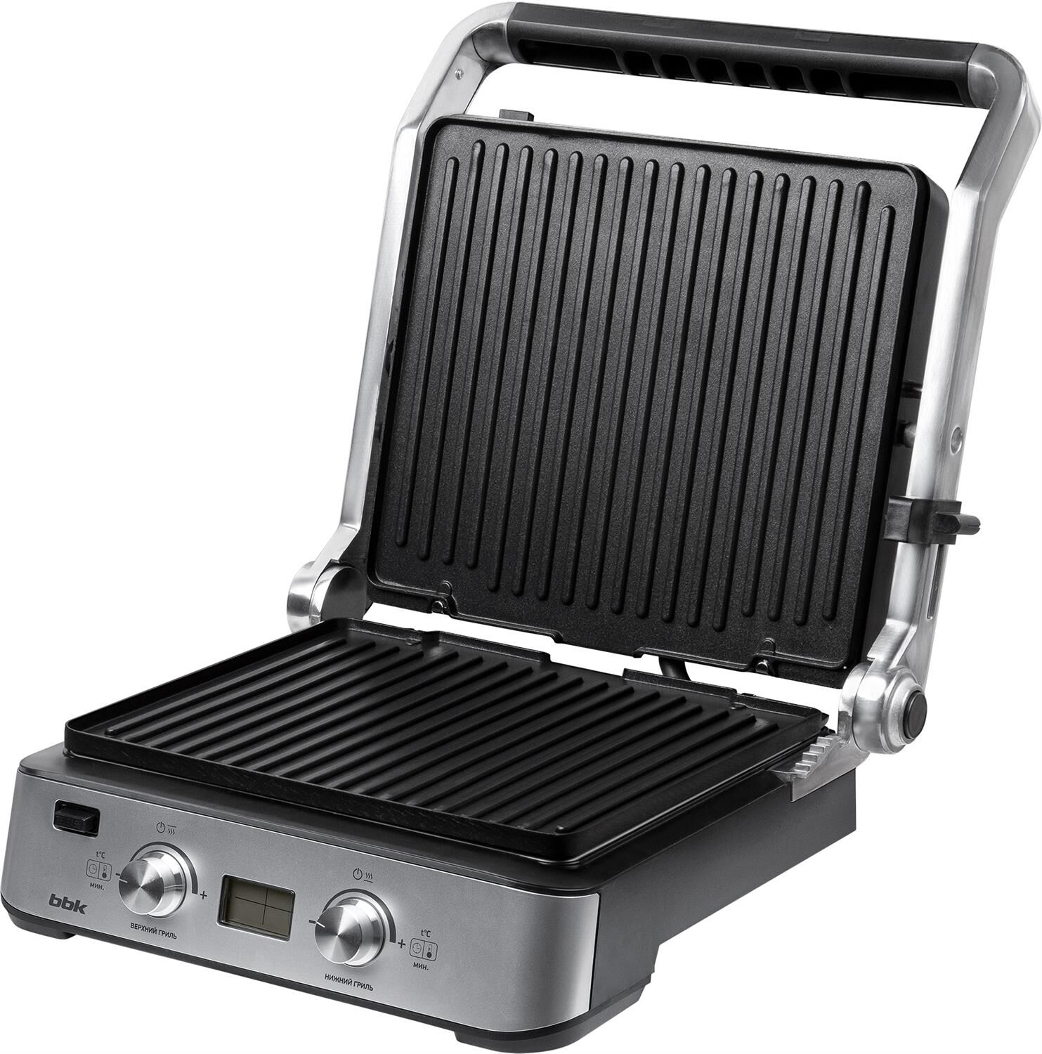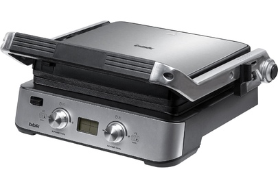 регулировка степени закрытия крышки с возможностью открытия на 180⁰ , съемные нагревательные пластины, функция раздельного управления температурой и временем приготовления верхнего и нижнего гриля, размер рабочей поверхности 260 х 29 мм