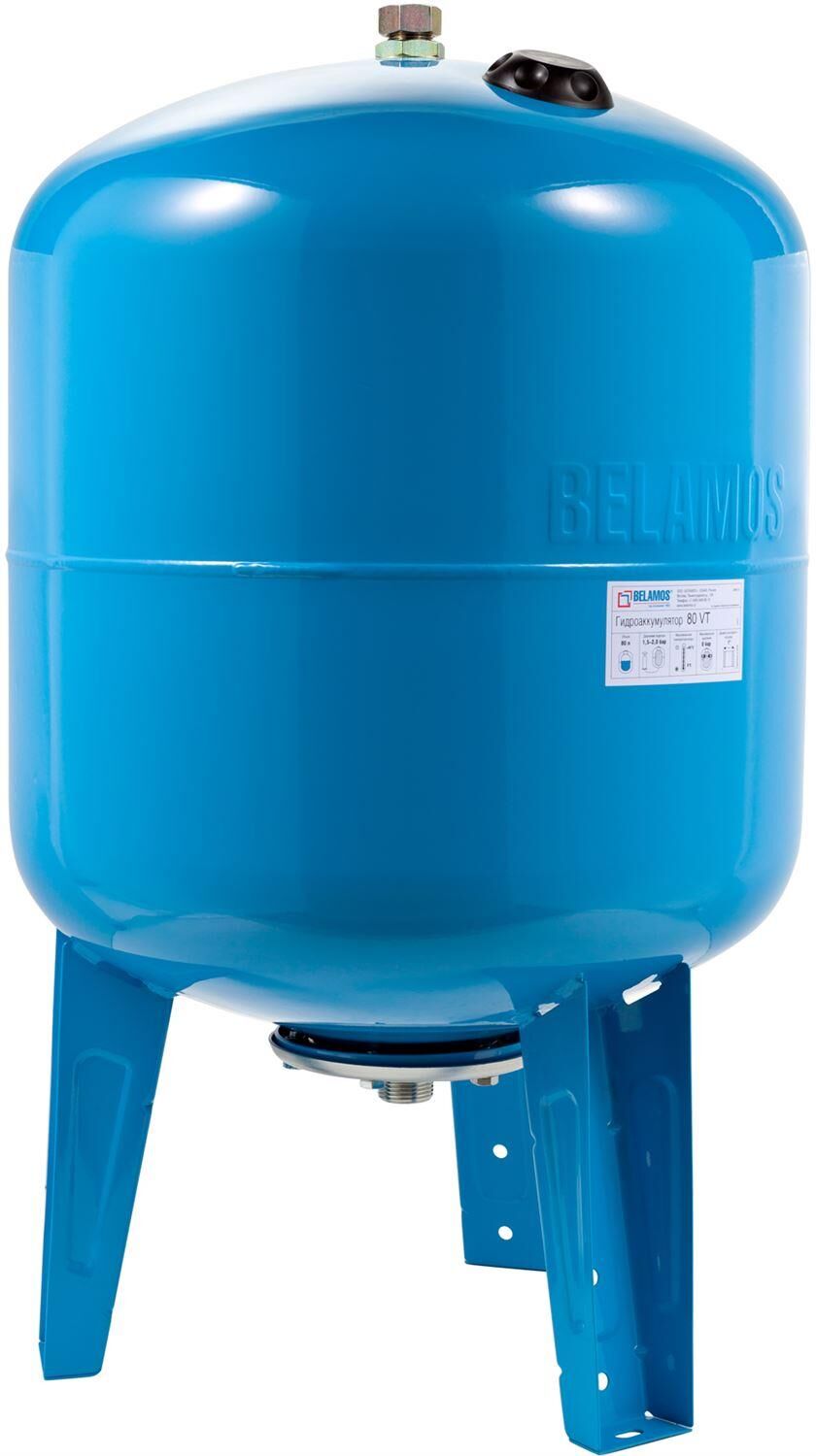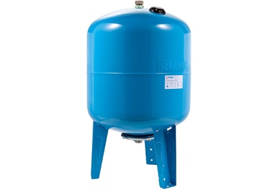 Гидроаккумулятор 80VT синий, вертикальный, проходной, дополнительный выход для подключения автоматики, макс давление 12 бар, оцинкованный фланец с пластиковой вставкой, макс температура до 95 градусов, мембрана из Немецкого материала