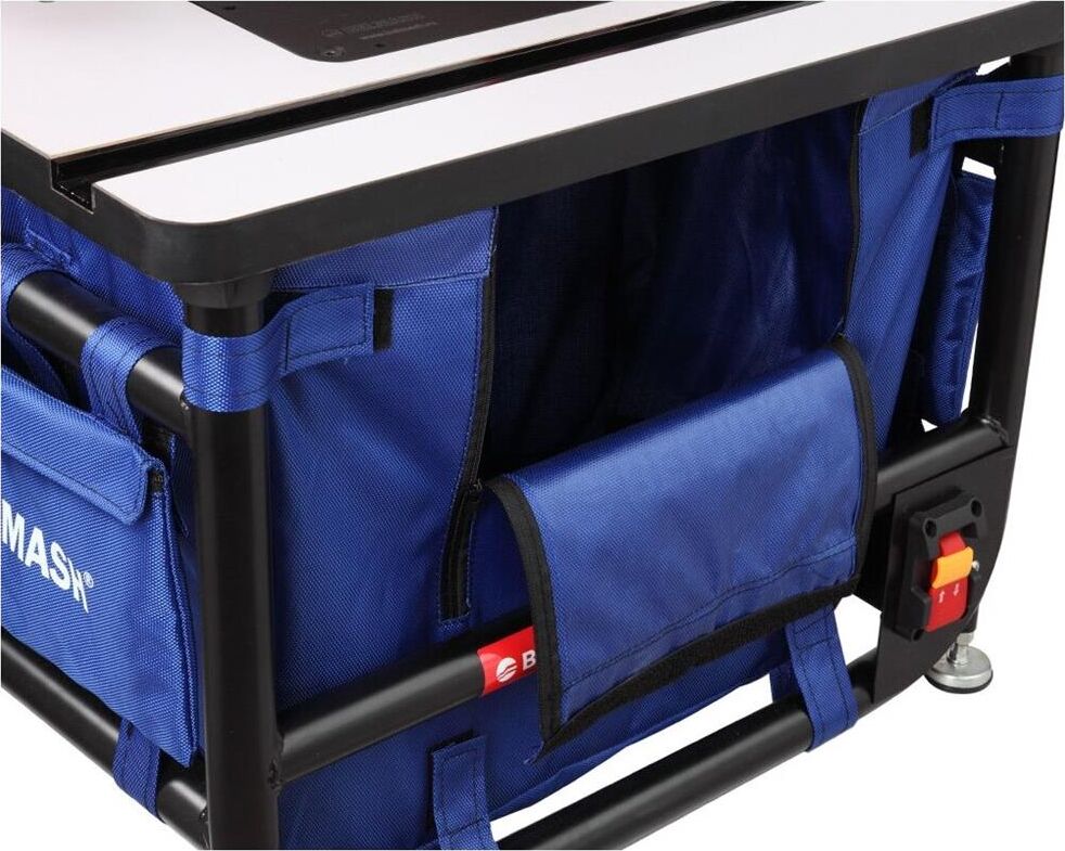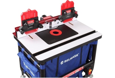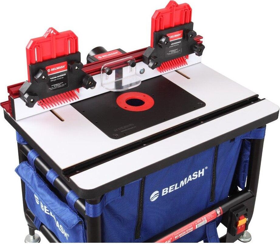 Основание фрезерного станка. Высота рабочей поверхности относительно пола 450 мм. Материал рабочего стола МДФ. Размер рабочего стола (Д х Ш х Т) 600 х 400 х 24 мм Тип паза Т-образный Размер паза (Ш х В) 19 х 9,5 мм Диаметр патрубка пыле/стружкоудаления 63 мм Размер параллельного упора (Д х В) 600 х 103 х 102 мм Размер накладных щечек параллельного упора 289 х 21 х 63 мм Количество накладных щечек параллельного упора 2 шт. Размер пластины установочной 298 х 235 х 10 мм Диаметр отверстия в пластине под проставочное кольцо 98,3 мм Внутренние диаметры вставок стола 35 / 50,8 мм Ход подвижного упора 125 мм Габаритный размер (Д х Ш х В) 600 х 440 х 575 мм