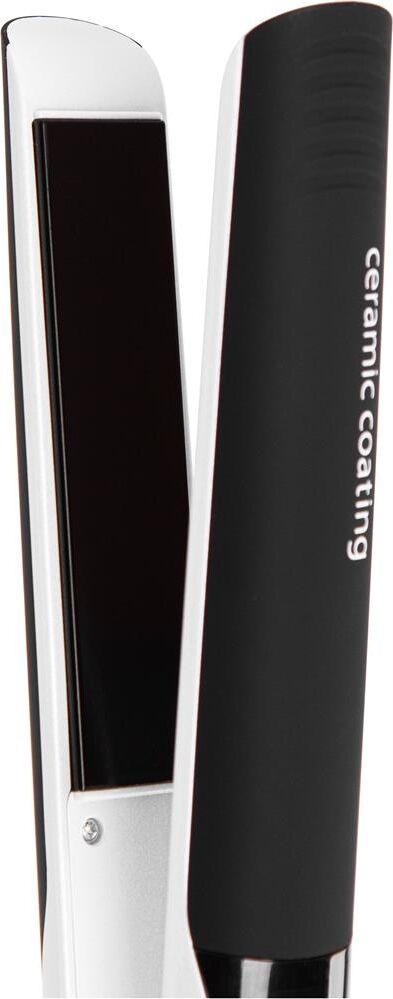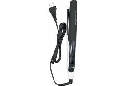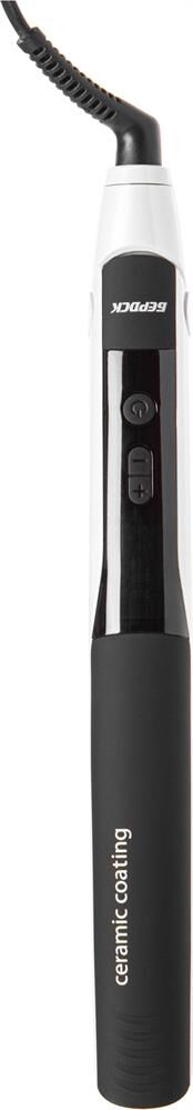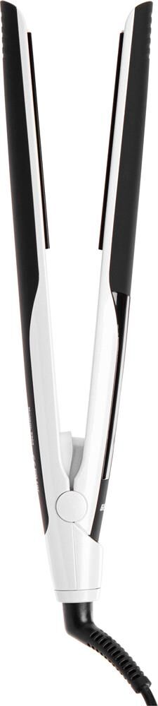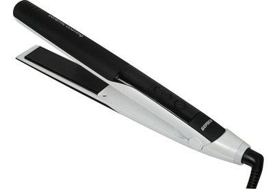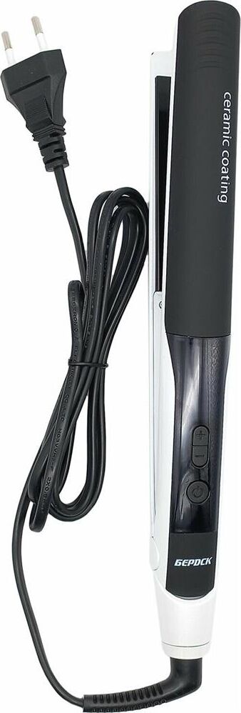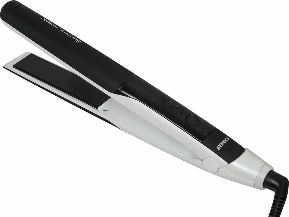 Кнопки "-" "+" регулирование температурного режима. Температурный интервал – 20 градусов. Прибор нагревается за 35 секунд. Автоматическое отключение через 1 час. Корпус покрыт эластомером. Керамическое покрытие пластин. Размер пластин 113х 20 мм. Вращение шнура – 360 градусов.