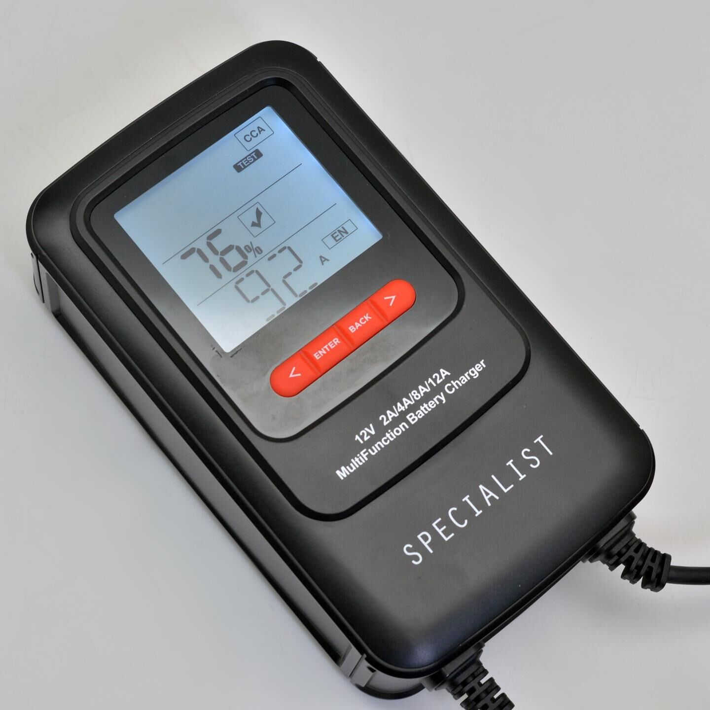 Зарядное устройство BERKUT BC-12A — полностью автоматическое устройство, предназначенное для диагностики, зарядки, ухода и технического обслуживания всех типов свинцово-кислотных аккумуляторных батарей (Сa/Ca, WET, EFB, MF, AGM, VRLA, GEL и LIFEPO4). Теперь пользователь может запустить все процессы диагностики как перед началом зарядки, так и по ее окончании и получить полную картину о состоянии своей АКБ — устройство снабжено многофункциональным ЖК-дисплеем, по которому можно оценить состояние батареи, уровень заряда и пусковых характеристик, а также замерить напряжение от генератора. Пользователь может управлять максимальным током заряда (2A, 4А, 8А или12А) в различных режимах работы. Можно выбрать 6 режимов зарядки: стандартный режим, зимний, режим AGM/EFB, зимняя зарядка для AGM/EFB, режим для кальциевых (Сa/Ca), режим LIFEPO4, а также функция SAVE для сохранения настроек авто. Устройство имеет поэтапный алгоритм работы, безопасно для любого электронного оборудования транспортных средств, имеет высокий ур