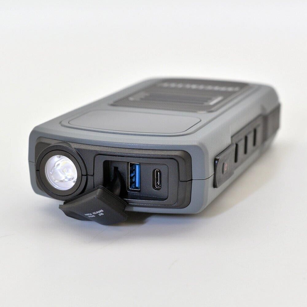 Мощный выход для запуска 12-вольтового бензинового двигателя до 4.5 л. и дизель до 2.5 л. Мощный светодиодный фонарь с тремя режимами работы.
