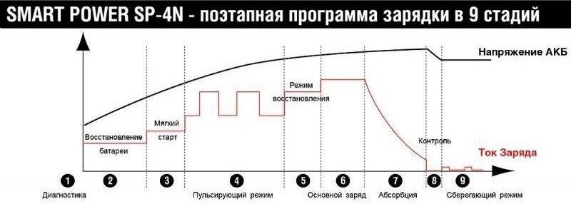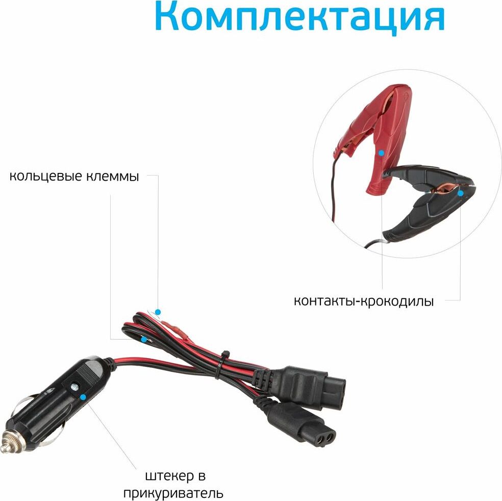12 Вольт для аккумуляторных батарей транспортных средств 3 Стадии зарядкипоэтапный режим работы 2A максимальный зарядный ток 220 Вольт подключение в бытовую сеть