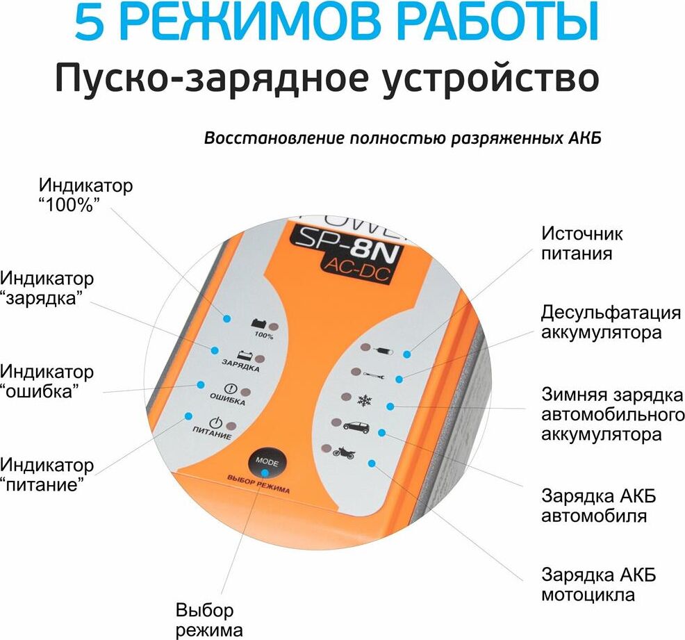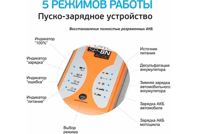 Ёмкость батареи 1,2-80 Ач Класс защиты IP 44 Масса 0.6 кг Напряжение ~220-240В, 50-60 Г Охлаждение Естественная конвекция Размеры устройства 180 x 75 x 70 мм Тип зарядного устройства 9 стадий, автоматический цикл (WET, MF,VRLA, CA, AGM и GEL)