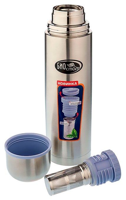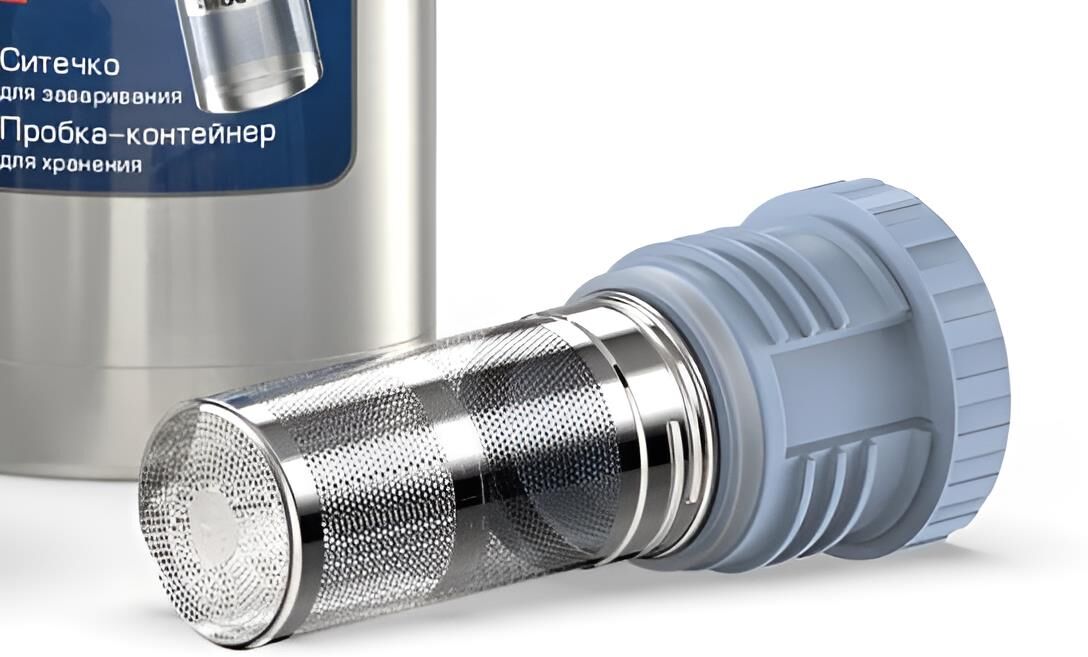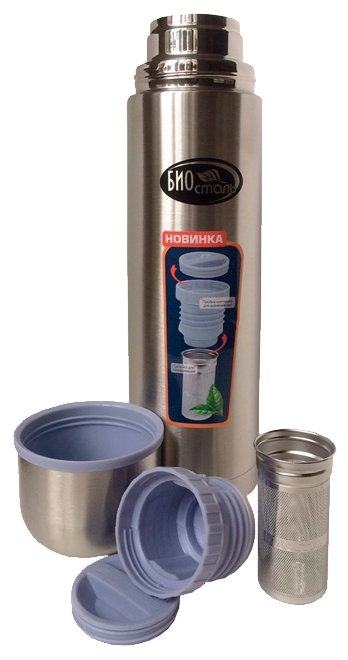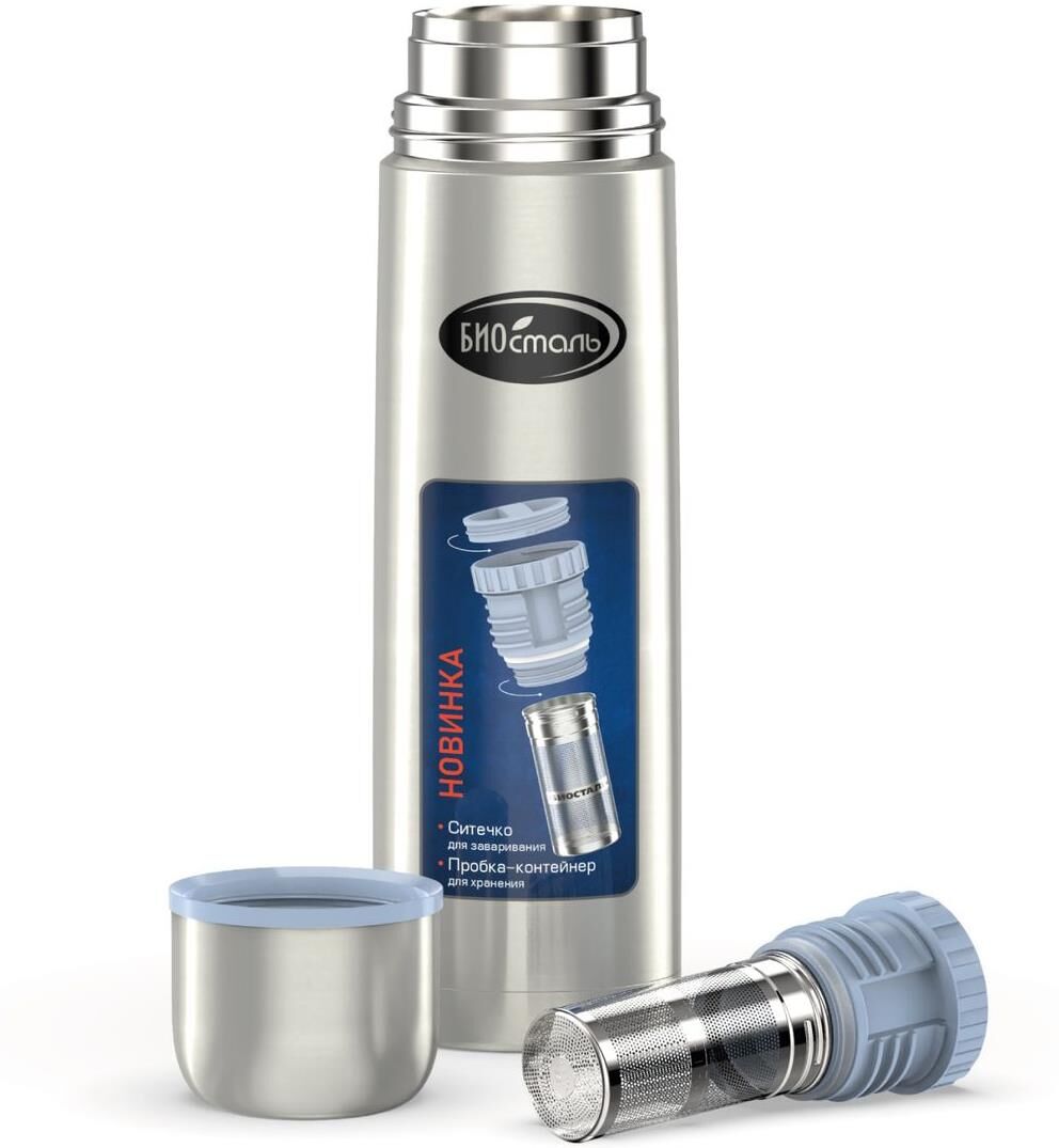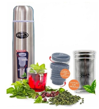 Термос 1,0л. Пробка-контейнер для хранения и ситечком для заваривания. Ситечко из высококач. нерж. стали 18/8.