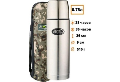 BIOSTAL Термос нерж 0,75л Охота узкое горло в чехле