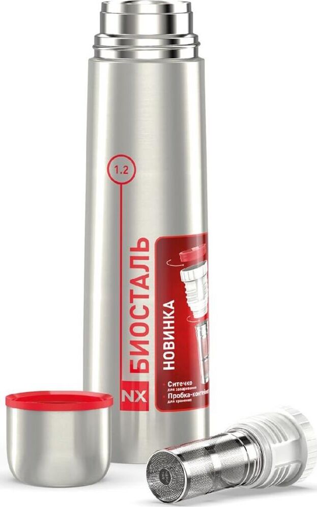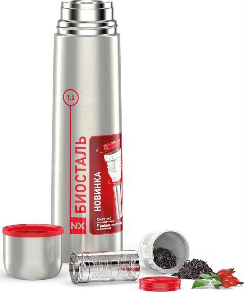 BIOSTAL Термос нерж 1,2л узкое горло пробка с ситечком