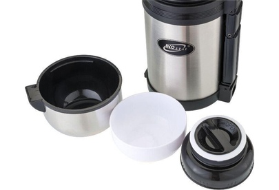 Универсальный пищевой термос NG-1500-1 от BIOSTAL относится к классической серии. Термосы этой серии просты в использовании, экономичны и многофункциональны. Универсальный термос выполняет функции термоса для еды (первого или второго) и термоса для напитков (кофе, чая). Это достигается благодаря специальной универсальной пробке, которая изготовлена из прочного пластика, легко разбирается для мытья и, обладая дополнительной теплоизоляцией, позволяет термосу дольше хранить тепло.