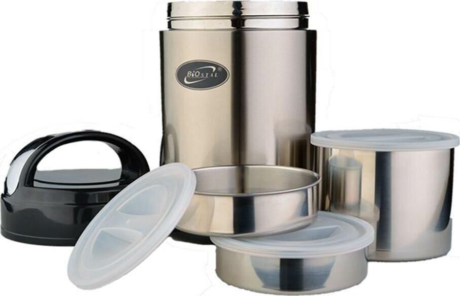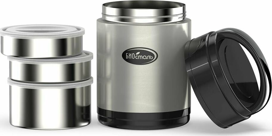 BIOSTAL Термос нерж 1,8л широкое горло с 3-мя метал контейнерами
