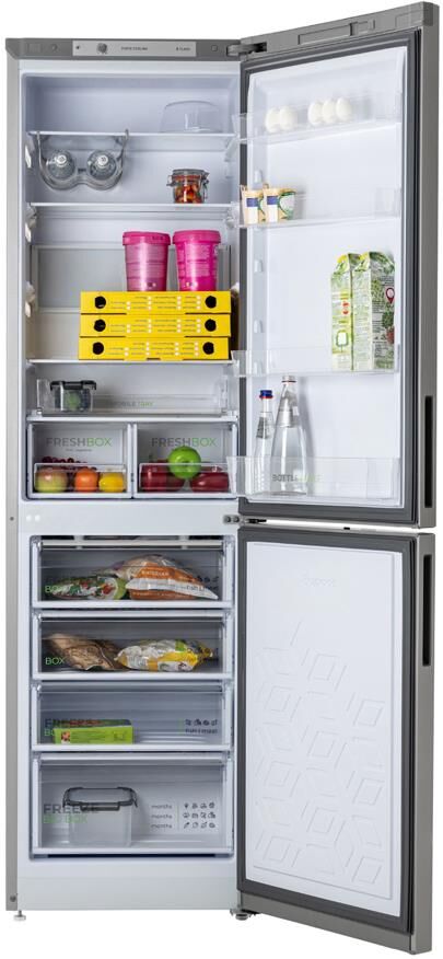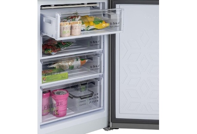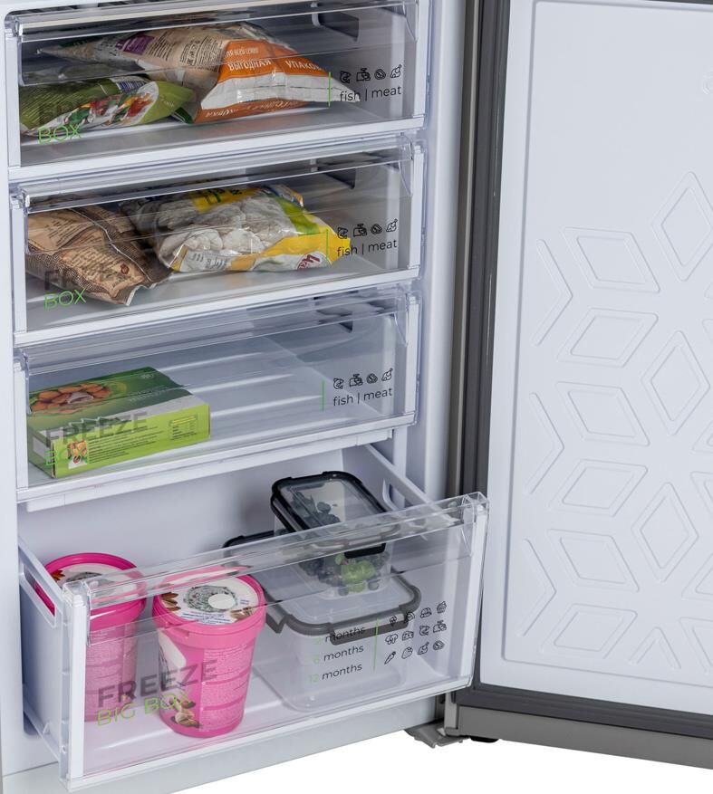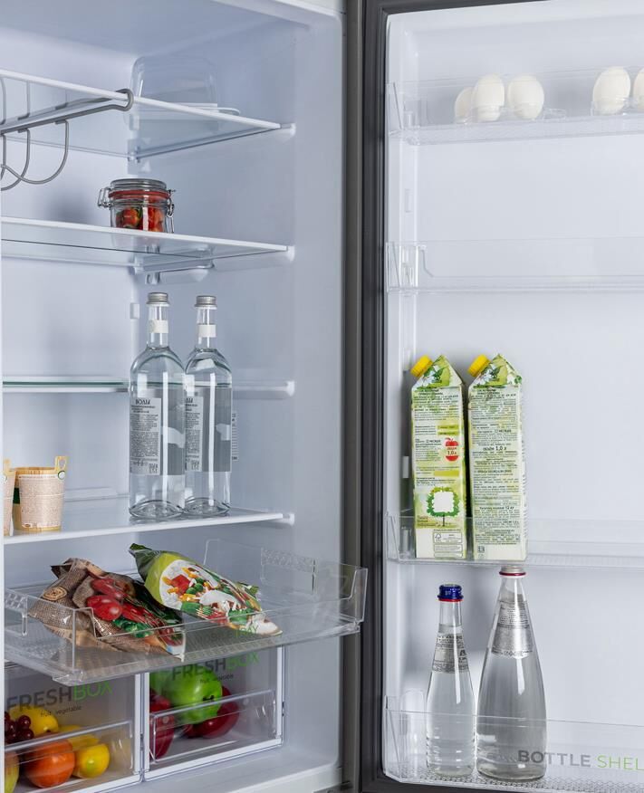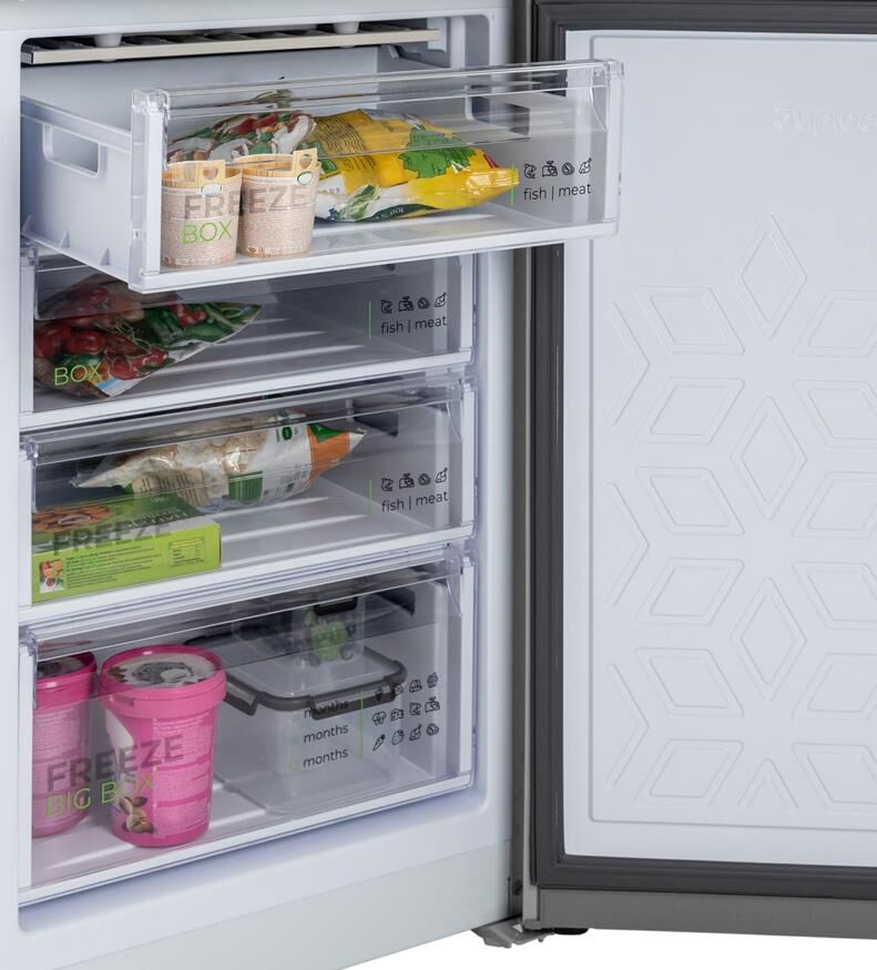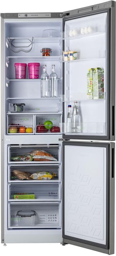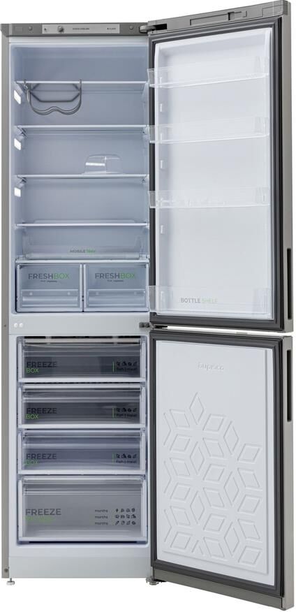 Размеры (ШхВхГ): 60 х 207 х 62.5 см; Цвет: Матовый графит; Автоматическое оттаивание; Две складные полки; Горизонтальное LED освещение; Выдвижной лоток; Механическое управление; Общий объем, л: 380; Объем холодильной камеры, л: 245; Объем морозильной камеры, л: 135; Количество камер: 2; Расположение морозильной камеры: Нижнее; Количество компрессоров: 1; Климатический класс: N; Суточный расход электроэнергии, при температуре окружающего воздуха 24°C, кВтч: 0.95; Возможность перевешивания двери; Класс энергоэффективности: A; Максимальный уровень шума, дБ: 41; Количество полок в холодильном отделении: 5; Температура в отделении для хранения свежих пищевых продуктов: От 0 до 8 °C; Материал полок: стекло/пластик; Оттаивание холодильной камеры: автоматическое; Количество ящиков в холодильном отделении: 2; Количество ящиков в морозильном отделении: 4; Размораживание морозильной камеры: ручное; Автономное сохранение холода, ч: 17; Минимальная температура в морозильной камере, °C: -18