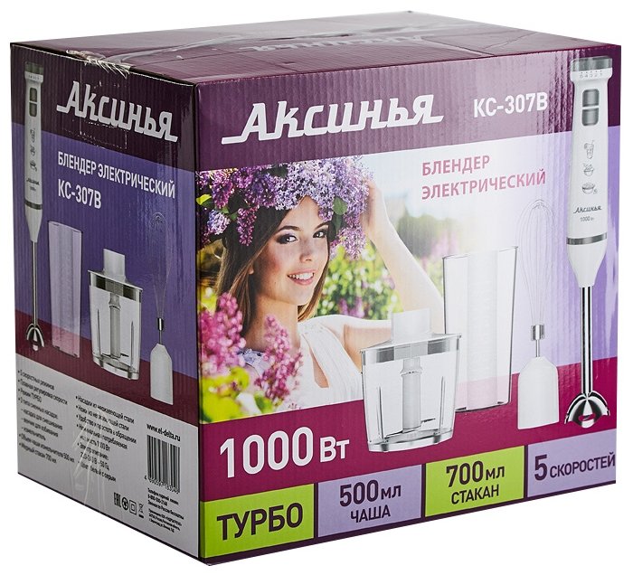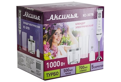 Блендер АКСИНЬЯ КС-307В белый с серым: 1000Вт, нож из нерж. стали,2 скорости,"Турбо" (Россия)(6)