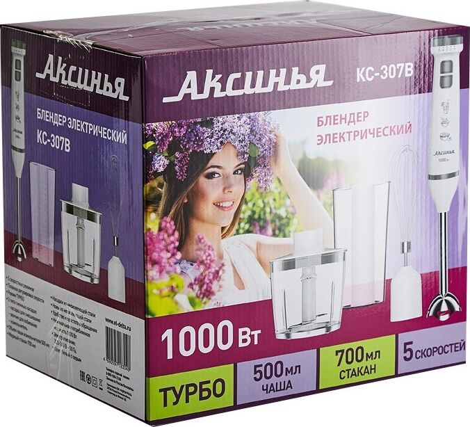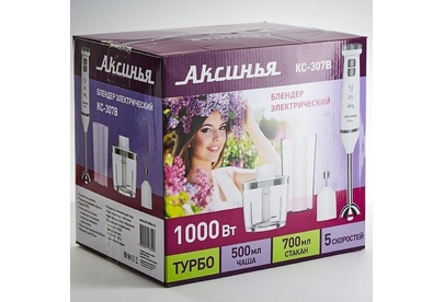 Блендер АКСИНЬЯ КС-307В белый с серым: 1000Вт, нож из нерж. стали,2 скорости,"Турбо" (Россия)(6)