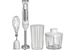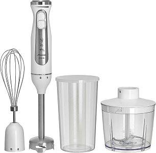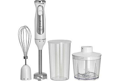 Параметры Максимальная мощность 1500 Вт Номинальная потребляемая мощность 600 Вт Объем чаши измельчителя 500 мл Объем мерного стакана 700 мл Описание Блендер электрический предназначен для смешивания, измельчения и взбивания продуктов и жидкостей в бытовых и аналогичных условиях Ножи из нержавеющей стали Три сменные насадки: насадка для смешивания венчик для взбивания измельчитель Мерный стакан Противоскользящие ножки чаши измельчителя Плавная регулировка скорости Режим «ТУРБО» Цвет: белый Упаковка: цветная коробка