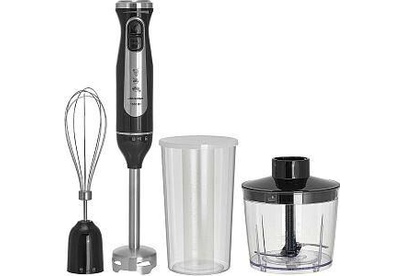Параметры Максимальная мощность 1500 Вт Номинальная потребляемая мощность 600 Вт Объем чаши измельчителя 500 мл Объем мерного стакана 700 мл Описание Блендер электрический предназначен для смешивания, измельчения и взбивания продуктов и жидкостей в бытовых и аналогичных условиях Ножи из нержавеющей стали Три сменные насадки: насадка для смешивания венчик для взбивания измельчитель Мерный стакан Противоскользящие ножки чаши измельчителя Плавная регулировка скорости Режим «ТУРБО» Цвет: черный Упаковка: цветная коробка