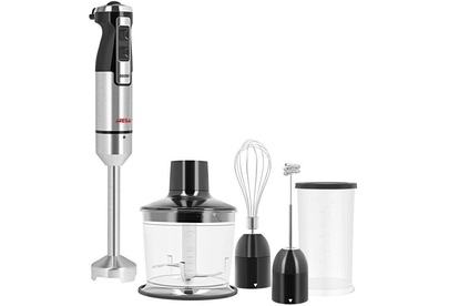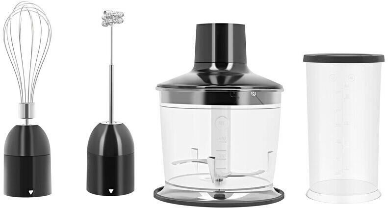 • Номинальная потребляемая мощность: 400Вт • Максимальная мощность: 800 Вт • Плавная регулировка скорости • Функция "ТУРБО" (максимальное увеличение скорости) • Ножка блендера из нержавеющей стали • Съемная насадка-блендер с 4-х лопастным ножом • Эргономичный дизайн 4 ОСНОВНЫЕ ФУНКЦИИ: • Измельчение • Смешивание • Взбивание • Капучинатор КОМПЛЕКТАЦИЯ: • Мерный стакан для смешивания (объём 0,6 л) с крышкой • Чаша для измельчения (объём 0,5 л) с крышкой • Венчик для взбивания • Нож для измельчения • Вспениватель молока