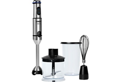 Блендер. Номинальная потребляемая мощность: 250Вт. Максимальная мощность: 1000 Вт. LED индикация. 2 скоростных режима. Функция«ТУРБО» (максимальное увеличение скорости). Плавная регулировка скорости. Ножка блендера из нержавеющей стали. SafeEdge - защита от царапин. Надёжная фиксация. Насадка блендер с 4-х лопастным титановым ножом. 3 ОСНОВНЫЕ ФУНКЦИИ: Измельчение. Смешивание. Взбивание. КОМПЛЕКТАЦИЯ: Мерный стакан для смешивания с крышкой (объём 0,8 л). Чаша для измельчения (объём 0,5 л). Нож для измельчения. Венчик для взбивания.