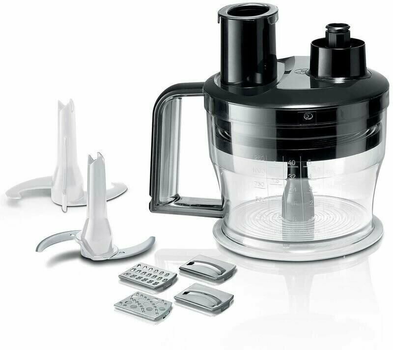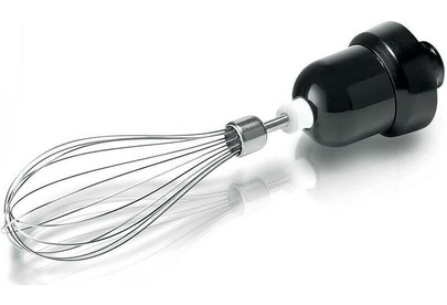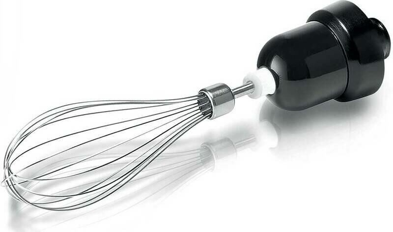 Блендер погружной, мощность 1200 Вт, материал корпуса: металл, материал погружной части: нержавеющая сталь, импульсный режим, защита от перегрева, в комплекте: венчик; измельчитель; крюк для замешивания теста; насадка-шинковка