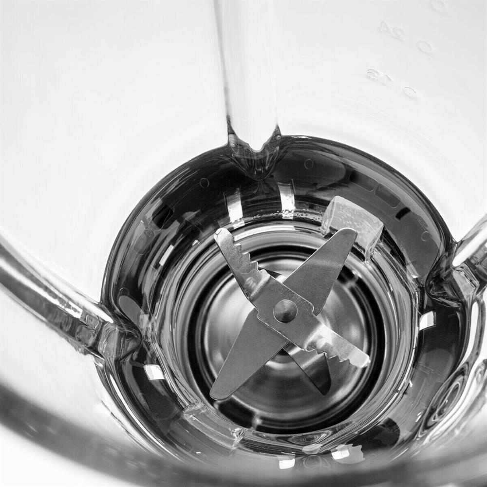 Высокопроизводительный мотор 1200 Вт Плавная регулировка скорости 5 скоростей + импульсный режим работы Колка льда 6 ножей из нержавеющей стали Механическое управление Металлический корпус Стеклянный кувшин 1,75 л Защитная блокировка Прорезиненные нескользящие ножки Электропитание 220-240 В, ~50/60 Гц