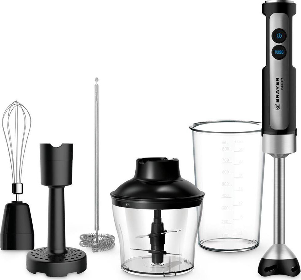 1256BR Блендер погружной BRAYER Погружной блендер BRAYER, 1500 Вт, капуч, пюре, венч, стак 800, изм
