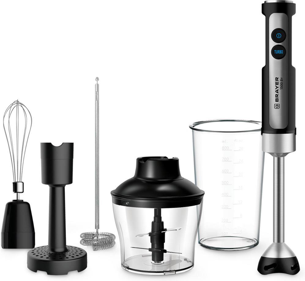1256BR Блендер погружной BRAYER Погружной блендер BRAYER, 1500 Вт, капуч, пюре, венч, стак 800, изм