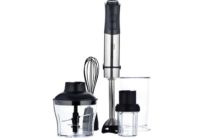 Мощность 1500 Вт LED-дисплей 12 скоростных режимов Лезвия из титана Погружная часть блендера с нейлоновым покрытием для предотвращения повреждения посуды Корпус из пластика, декорирован нержавеющей сталью Плавная регулировка скорости Насадка-венчик для взбивания с нейлоновым покрытием для предотвращения повреждения посуды Стакан для смешивания 800 мл Насадка-блендер для измельчения и смешивания Насадка-кофемолка Насадка-измельчитель объемом 600 мл Электропитание 220-240 В, ~ 50-60 Гц