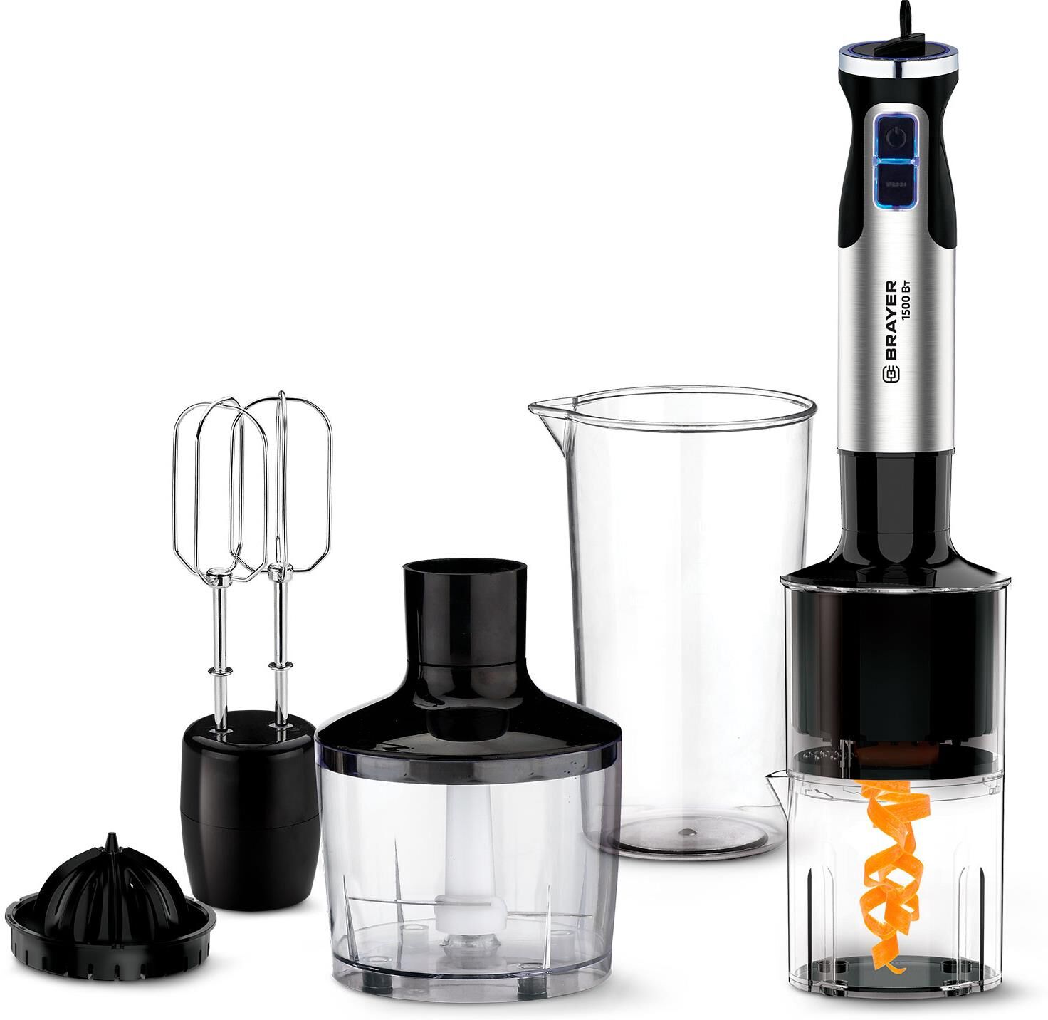 1270BR Блендер погружной BRAYER 1500Вт, венчик,измельчитель860 мл, соковыжималка, спираль. нарезка
