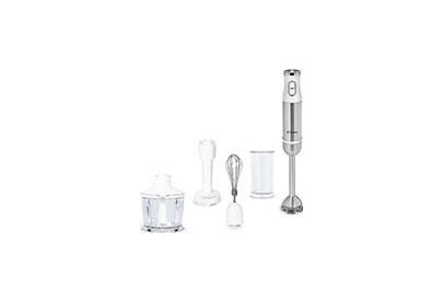Блендер CANDY CB-201 - востребованный помощник в приготовлении различной пищи. Он позволяет измельчать, смешивать и взбивать продукты до однородной консистенции. Блендер CANDY CB-201 оснащен погружной насадкой из нержавеющей стали с лезвиями внутри, измельчителем с чашей 800 мл, венчиком для взбивания и мерным стаканом объемом 600 мл. Поворотный механизм на корпусе позволяет плавно регулировать скорость вращения. На рукоятке прибора также расположены кнопки управления. Основные характеристики: Тип: блендер Тип блендера: погружной Мощность:1200 Вт Объем: 800 мл Объем стакана: 600 мл Насадки: венчик для взбивания, насадка для приготовления пюре Плавная регулировка скорости: да Режим Turbo: да Подсветка кнопок: да Силиконовая обработка погружной части для защиты посуды: да Материал корпуса: пластик, сталь Цвет: белый/серебристый Комплектация: Блендер, венчик для взбивания, насадка для приготовления пюре, мерный стакан, документация