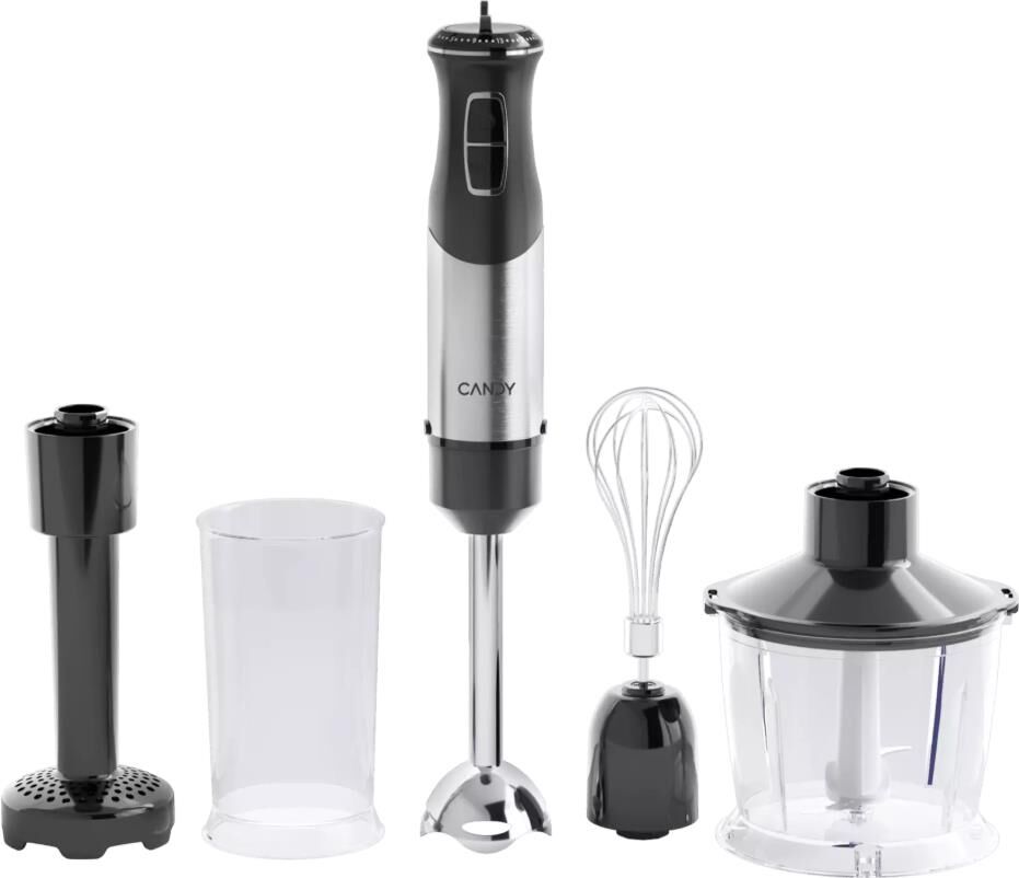 Мощность 1200 Ватт. Плавная регулировка скорости. Венчик для взбивания. Стакан емкостью 600 мл. Измельчитель емкостью 800 мл. Насадка для измельчения картофеля. Характеристики: Напряжение: 220-240 В Частота: 50/60 Гц Потребляемая мощность: 1200 Вт Материал корпуса: пластик, металл Объем чаши: 0.8 Тип управления: механическое Подсветка: нет Насадки приборов для измельчения продуктов: венчик, чаша-измельчитель, для смешивания, насадка-блендер, насадка для измельчения картофеля. Емкости в комплекте: стакан емкостью 600 мл, измельчитель емкостью 800 мл Вес нетто (кг): 1.4 Цвет: черный