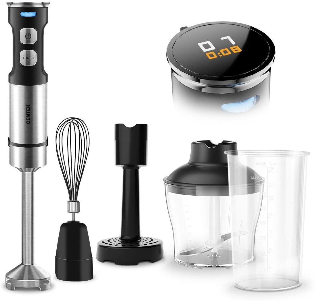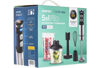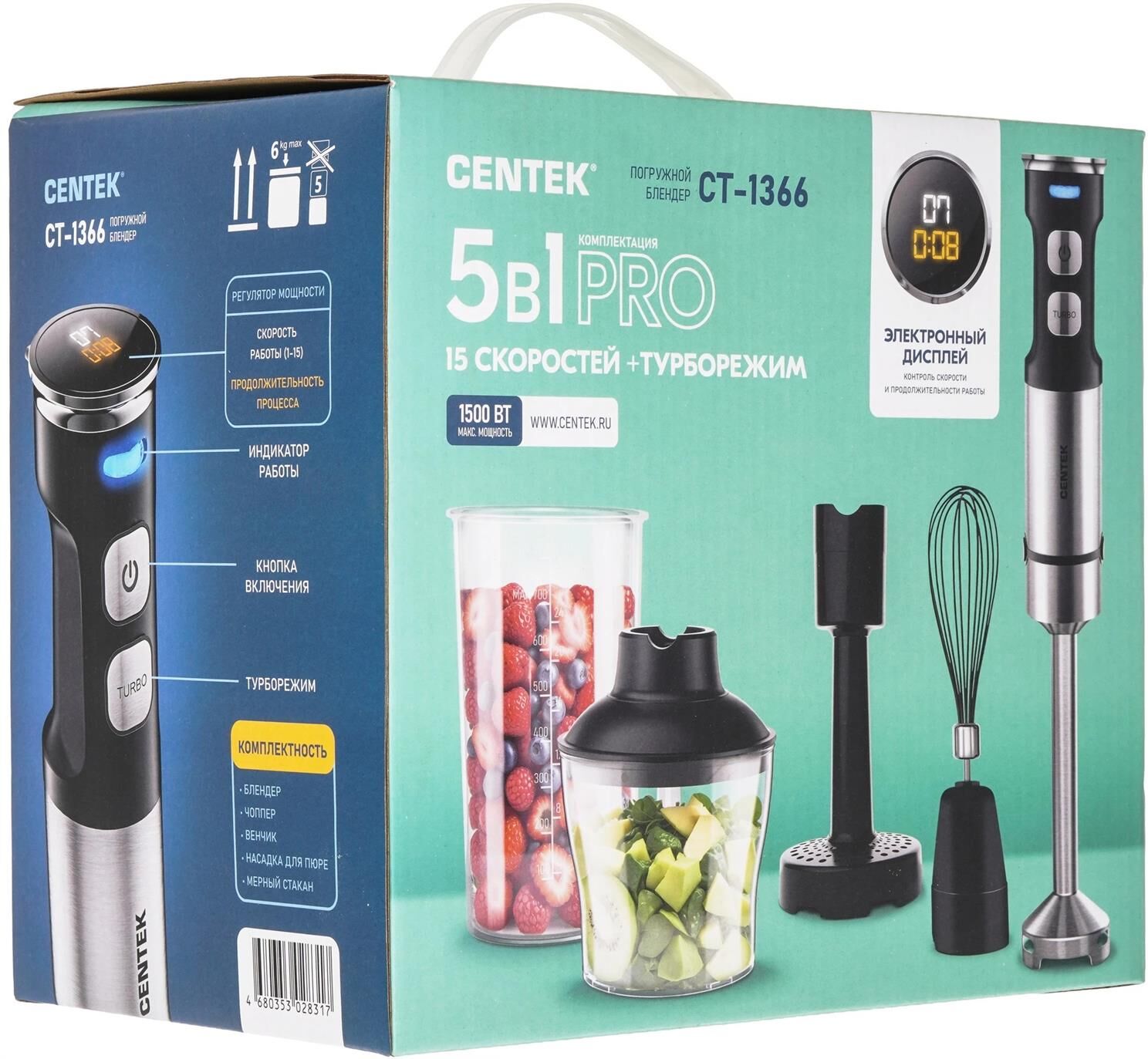 Блендер Centek CT-1366 (сталь) 1500Вт, 5в1, блендер/венчик/чоппер, ДИСПЛЕЙ 650мл+мерный стакан 800мл