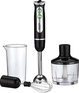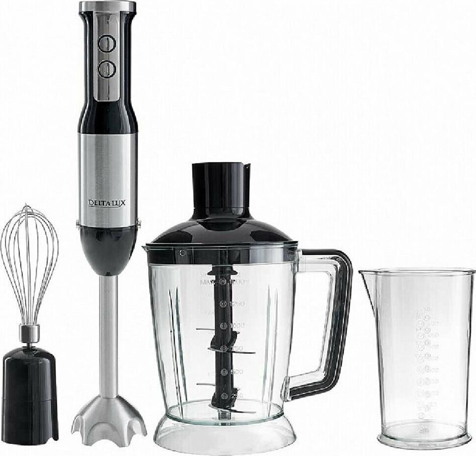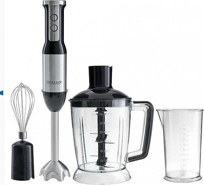 DELTA LUX DE-7003B черный Параметры Максимальная потребляемая мощность 1000 Вт Номинальная потребляемая мощность 600 Вт Объем чаши измельчителя 1500 мл Объем мерного стакана 500 мл Описание Блендер электрический предназначен для смешивания, измельчения и взбивания продуктов и жидкостей в бытовых условиях Идеально подходит для приготовления супов-пюре, соусов и подлив, детского питания, смешивания разнообразных коктейлей, измельчения продуктов в бытовых и аналогичных условиях, в частности: в кухонных зонах для персонала в магазинах, офисах и прочих производственных условиях; в фермерских домах; клиентами в гостиницах, мотелях и прочей инфраструктуре жилого типа; в условиях режима пансиона «проживание плюс завтрак» Цвет: черный Двойной нож из нержавеющей стали Три сменные насадки: насадка для измельчения и смешивания венчик для взбивания измельчитель Мерный стакан Индикатор сети с LED-подсветкой кнопок Плавная регулировка скорости Режим «ТУРБО» Возможность измельчения льда Упаковка: цветная к