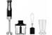 Максимальная мощность 1000Вт. Номинальная потребляемая мощность 600 Вт. Объем чаши измельчителя 500 мл. Объем мерного стакана 700 мл. Блендер электрический предназначен для смешивания, измельчения и взбивания продуктов и жидкостей в бытовых условиях. Цвет: черный. Насадки и ножи из нержавеющей стали. Специальная заточка ножей. Три сменные насадки: насадка для смешивания, венчик для взбивания, измельчитель. Противоскользящие ножки чаши измельчителя. Мерный стакан. 5 скоростных режимов. Режим «ТУРБО». Плавная регулировка скорости.