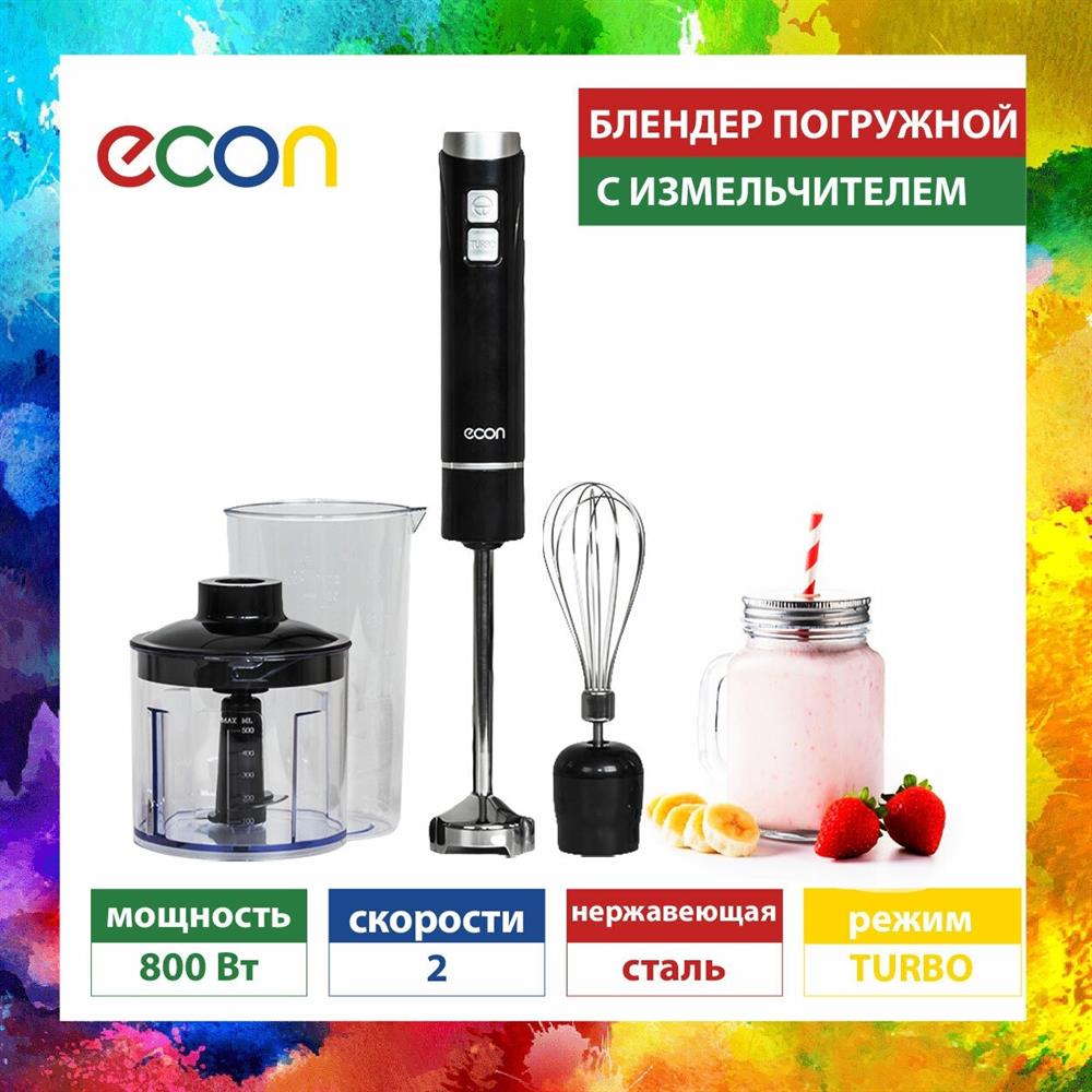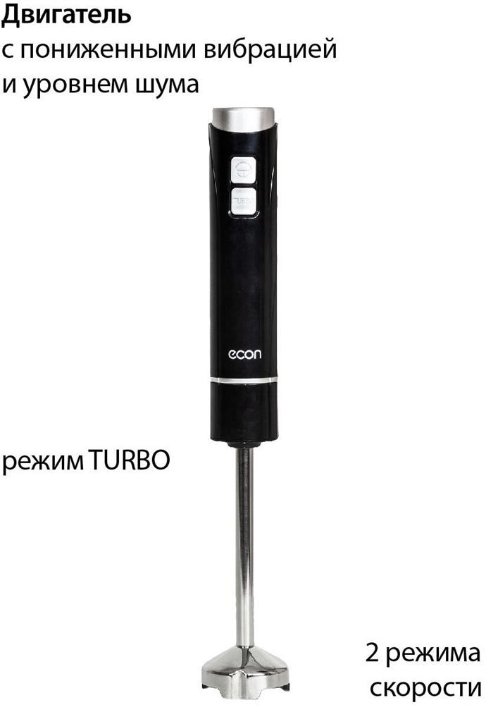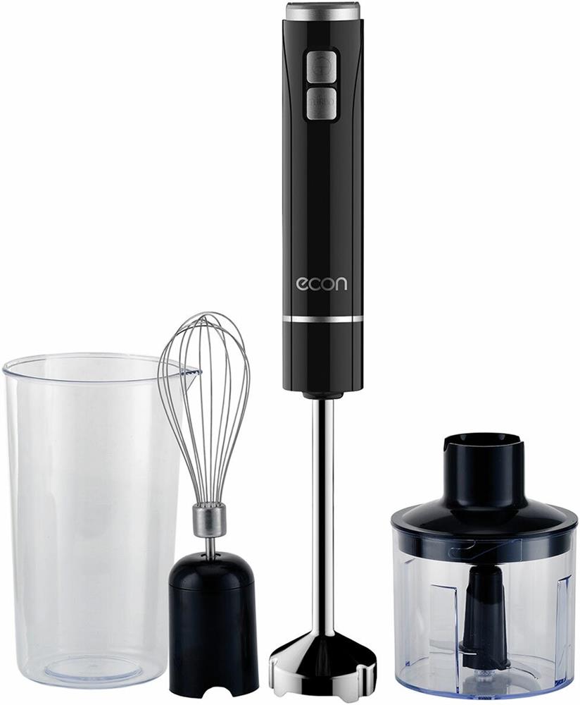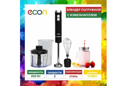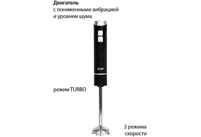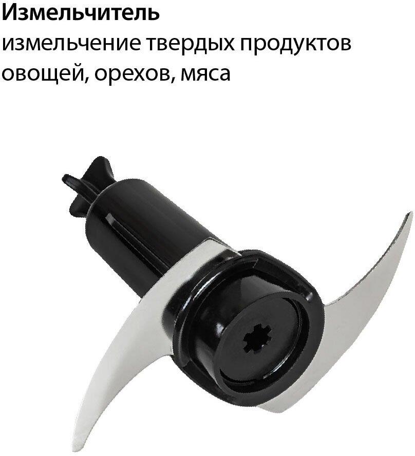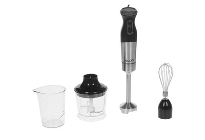 Блендер погружной, максимальная мощность 800 Вт, компактый размер - диаметр корпуса 42 мм, 2 скорости, насадка-блендер из нержавеющей стали, съемная насадка-венчик из нержавеющей стали, мини-измельчитель 500 мл, мерный стакан 700 мл, цвет черный с серым