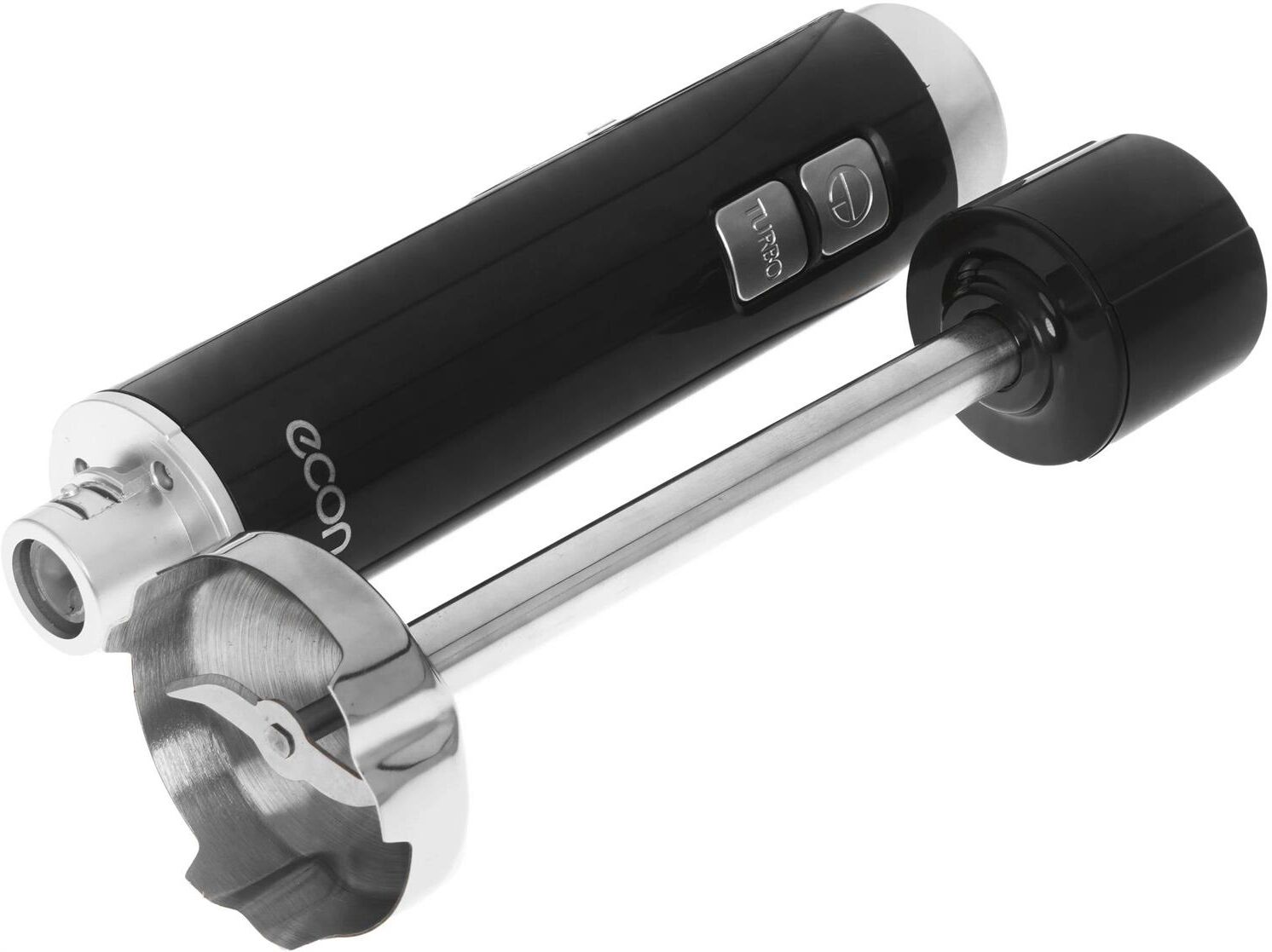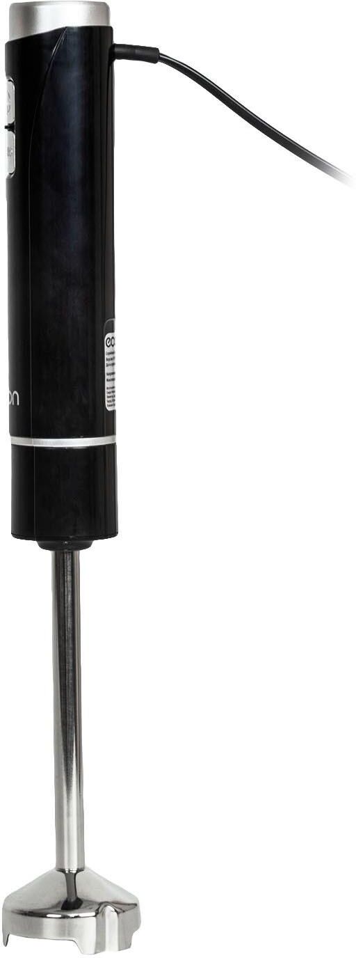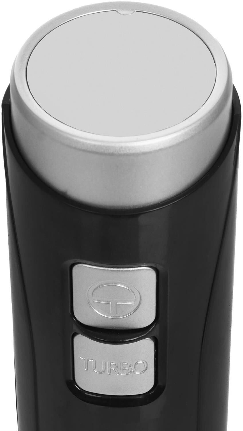 Блендер погружной, максимальная мощность 800 Вт, компактый размер - диаметр корпуса 42 мм, 2 скорости, насадка-блендер из нержавеющей стали, съемная насадка-венчик из нержавеющей стали, мини-измельчитель 500 мл, мерный стакан 700 мл, цвет черный с серым