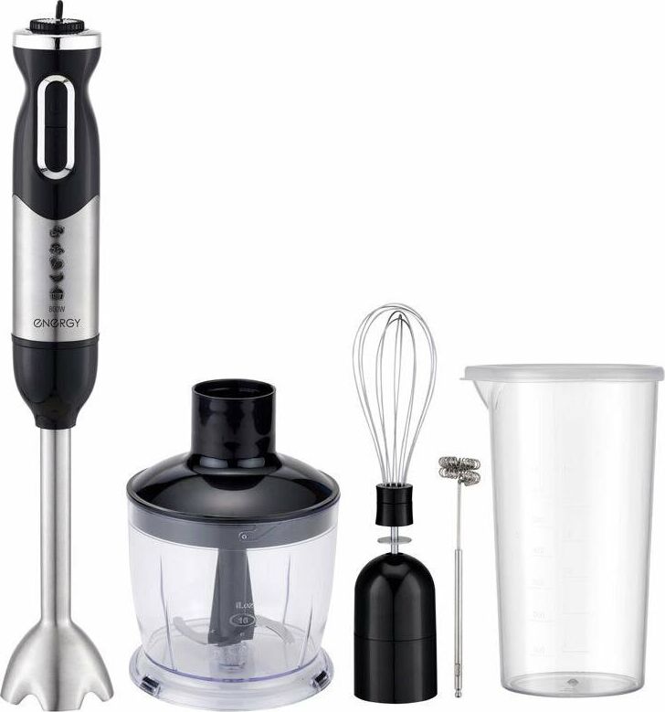 2 скорости работы Обычный и Turbo режим Регулятор скорости Ножи из нержавеющей стали Металлическая насадка блендер Стакан для смешивания 600 мл с крышкой Измельчитель 500 мл Венчик Вспениватель молока Петля для подвешивания Мощность 800 Вт Длина шнура 1,5 м