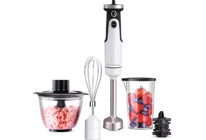 600 Вт, 8 скоростей, многоступенчатая регулировка скорости,Турборежим.Измельчитель с острым S-образным ножом с 4 лезвиями.Насадка-блендер.Насадка-венчик.Специальная насадка для чистки чеснока. Стакан с крышкой на 500 мл