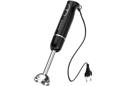 Мощность 1000Вт, 3 в 1 блендер/миксер/капучинатор + мерная чаша в комплекте, 2 скоростных режима + плавная регулировка скорости, погружная насадка из стали + стальные лезвия.