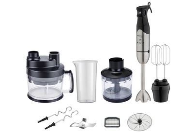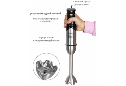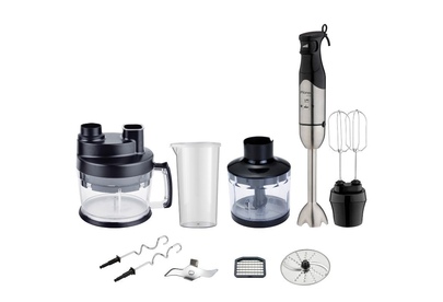 Артикул: HB137S Максимальная мощность, Вт.: 1200 Плавная регулировка скорости: есть Материал ножей: нержавеющая сталь Материал насадки блендер: нержавеющая сталь Емкость измельчителя, мл.: 400 Емкость для нарезки кубиками, л..: 2 Размер решетки, мм.: 8x8 Емкость мерного стакана, мл.: 600 Петля для подвешивания: есть Насадки: двусторонняя дисковая насадка для нарезки ломтиками и терки, битеры, насадка для теста Комплектация: блендер, насадки, измельчитель, мерный стакан с крышкой, емкость для нарезки кубиками, гарантийный талон, инструкция на русском языке Материал корпуса: нержавеющая сталь Цвет: серебристый с черным Электропитание, в., Гц.: 220-240, 50 Дополнительная информация: съемный вал