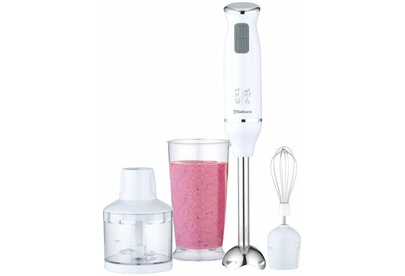 800 Вт, мощный и тихий DC мотор, 2 скорости работы, лезвия из нерж.стали, погруж.часть блендера из нерж.стали, насадка-венчик из стали, градуированный стакан (0,7 л), чоппер (0,5 л) с острыми ножами из нерж.стали