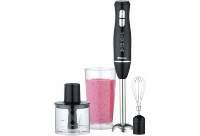 600 Вт, мощный и тихий DC мотор, 2 скорости работы, лезвия из нерж.стали, погруж.часть блендера из нерж.стали, насадка-венчик из стали, градуированный стакан (0,7 л), чоппер (0,5 л) с острыми ножами из нерж.стали