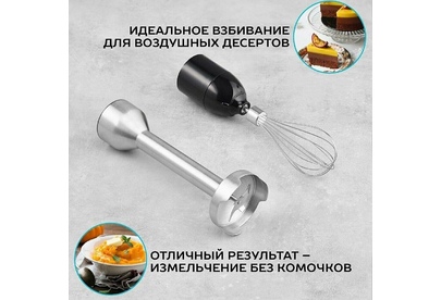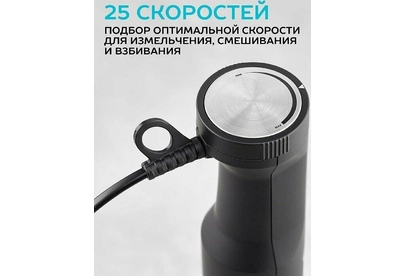 Тип: Погружной Мощность, Вт: 1100 Количество скоростных режимов: 25 Режим TURBO: Да Мини-измельчитель: Да Емкость мини-измельчителя, л: 0.6 Венчик для взбивания: Да Мерный стакан: Да Мерный стакан, л: 0.6 Материал погружной части: Металл Цвет: Черный