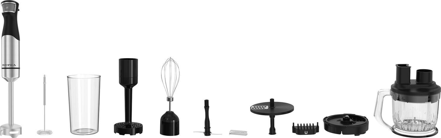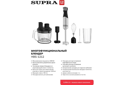 Многофункциональный блендер( набор - кубик), максимальная мощность: 2000 Вт, бесступенчатое управление одной кнопкой, усиленное лезвие блендера из нержавеющей стали: 2 лепестка, большая чаша для измельчения, нарезки и терки продуктов: 1250 мл, мерный стакан: 700 мл, насадка венчик для взбивания , насадка для приготовления картофельного пюре, насадка для приготовления молочного коктейля, специальная насадка для нарезки кубиками, специальная безопасная насадка толкатель для очистки, длина кабеля питания: 1 м.
