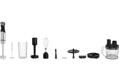 Многофункциональный блендер( набор - кубик), максимальная мощность: 2000 Вт, бесступенчатое управление одной кнопкой, усиленное лезвие блендера из нержавеющей стали: 2 лепестка, большая чаша для измельчения, нарезки и терки продуктов: 1250 мл, мерный стакан: 700 мл, насадка венчик для взбивания , насадка для приготовления картофельного пюре, насадка для приготовления молочного коктейля, специальная насадка для нарезки кубиками, специальная безопасная насадка толкатель для очистки, длина кабеля питания: 1 м.