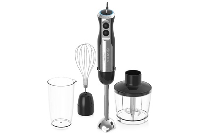 Венчик для взбивания, Длина сетевого шнура 110, Емкость измельчителя 500 мл, Емкость мерного стакана 600 мл, Измельчитель, Количество скоростей 6, Материал корпуса нержавеющая сталь/пластик, Материал погружной части нержавеющая сталь, Мощность 1000 вт, Плавная регулировка скорости, Управление механическое .