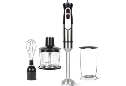 Корпус из нержавеющей стали и пластика Управление механическое Плавная регулировка скорости Длина шнура 1 м Объем мерного стакана 600 мл Объем чаши измельчителя 500 мл Тип ножей нержавеющая сталь Мощность 1400Вт Комплектация: Прибор Венчик для взбивания Переходник венчика Измельчитель с крышкой Мерный стакан с крышкой Инструкция