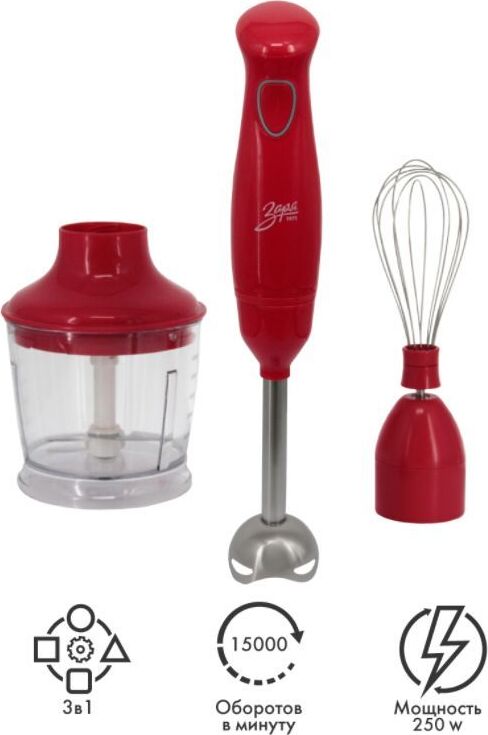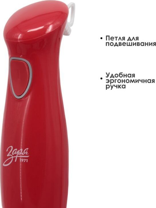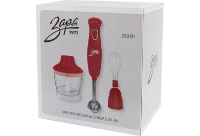 ЗАРЯ 301-04 Мощность 250 Вт, чаша-измельчитель (500 мл), насадка венчик, насадка блендер из нержавеющей стали УДОБНО Конструкция с прямым приводом наиболее удобна и проста в использовании. Ручка блендера изготовлена с учетом анатомических особенностей руки человека. МОЩНОСТЬ Высоко оборотистые двигатели данной модели позволяют свести время работы до нескольких секунд и полностью соответствуют европейским нормам безопасности. ЛЕГКОСТЬ В РАБОТЕ Использование разборной конструкции блендера позволяет его быстро мыть и компактно хранить. ФУНЦИОНАЛЬНОСТЬ С помощью блендера можно быстро и качественно: измельчить орехи, травы, сыр, приготовить горячее пюре прямо в кастрюле (50°С), смешать коктейль или детское питание.