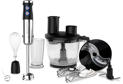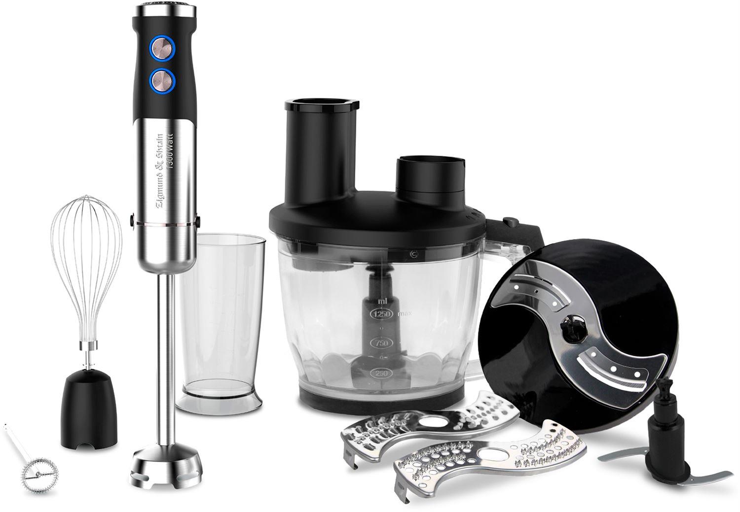 Блендер погружной многофункциональный 8 в 1 Мощность: 1300 Вт Напряжение: 220-240В, 50/60Гц Объем чаши: 0.8л Объем стакана: 0.6л Кол-во скоростей: 12 Импульсный режим (турбо): да LED подсветка кнопок Тип двигателя: DC