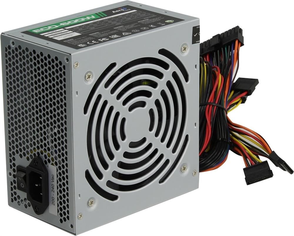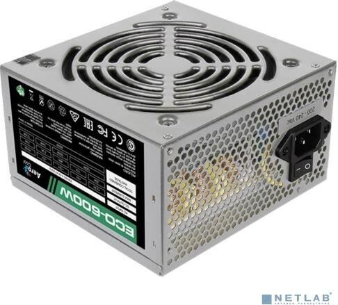 Блок питания AEROCOOL 600W Retail ECO-600W ATX v2.3 Haswell, fan 12cm, 400mm cable, power cord, 20+4P, 12V 4+4P,