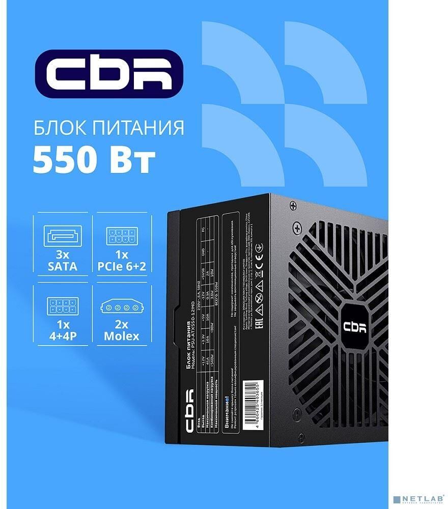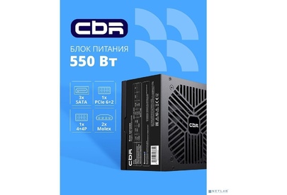 Блок питания CBR ATX 550W, 12cm fan, 24pin, 1*4+4pin, 1*6+2pin, 2*IDE, 3*SATA, кабель питания 1.2м, черный [PSU-ATX550-12MD] OEM