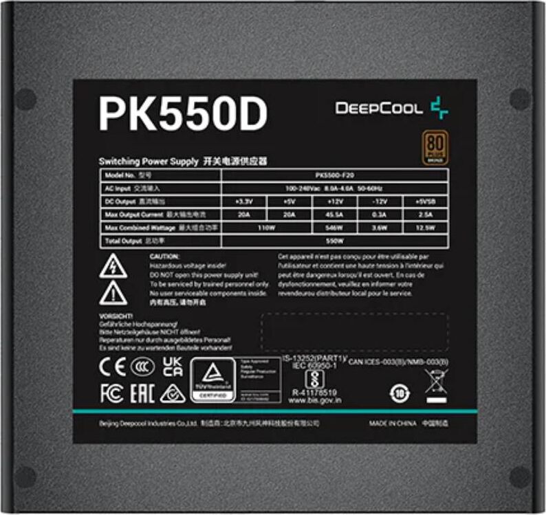 [Блок питания] Блок питания Deepcool ATX 550W PK550D 80+ bronze (20+4pin) APFC 120mm fan 6xSATA RTL