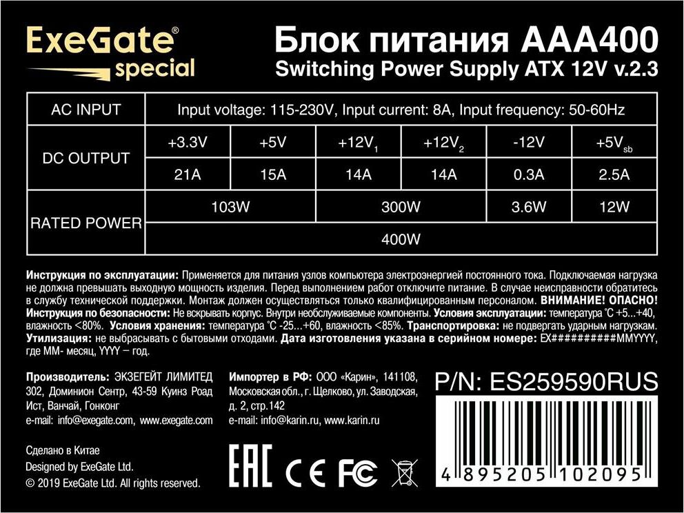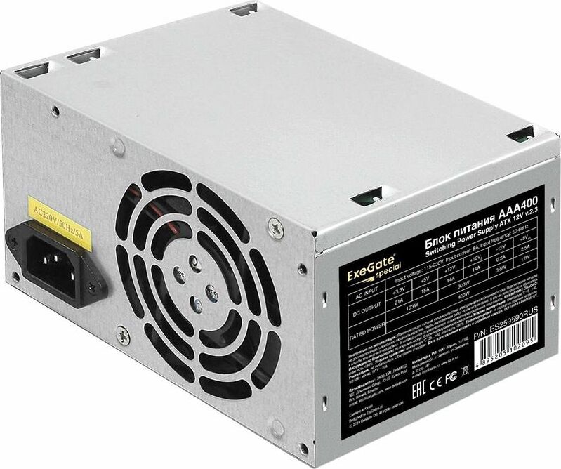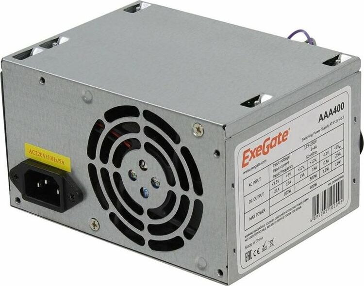 Блок питания EXEGATE 400W AAA400, ATX, 8cm fan, 24p+4p, 2*SATA, 1*IDE (ES259590RUS)
